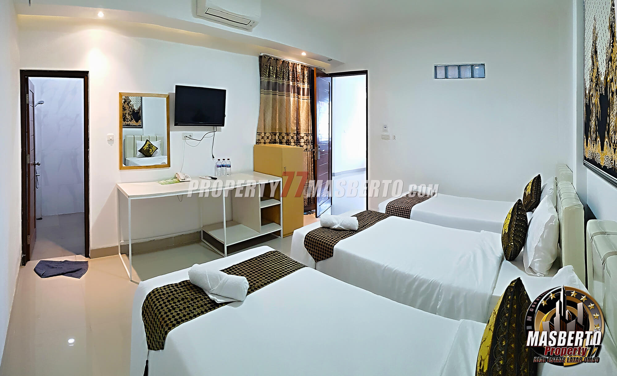 - 3 Single Bed plus Kamar Mandi Dalam dengan Closet Duduk, shower, air panas dan dingin (di Lantai 1)