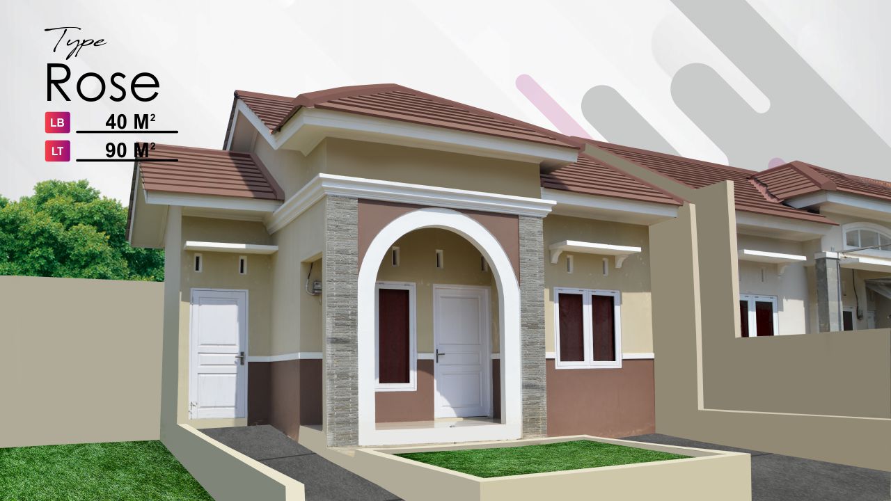 Hunian yang tersedia type Rose (40/90) dilengkapi dengan 2 kamar tidur, 1 kamar mandi, ruang tamu, carport dan taman.