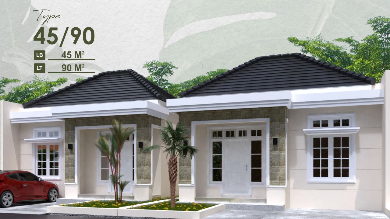 Hunian yang tersedia ada type (45/90) dilengkapi dengan 2 kamar tidur, 1 kamar mandi, ruang tamu, taman dan carport.