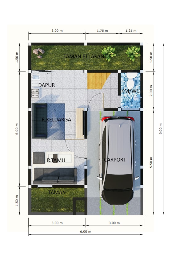 Tipe 70/64 (2 Lantai + rooftop)